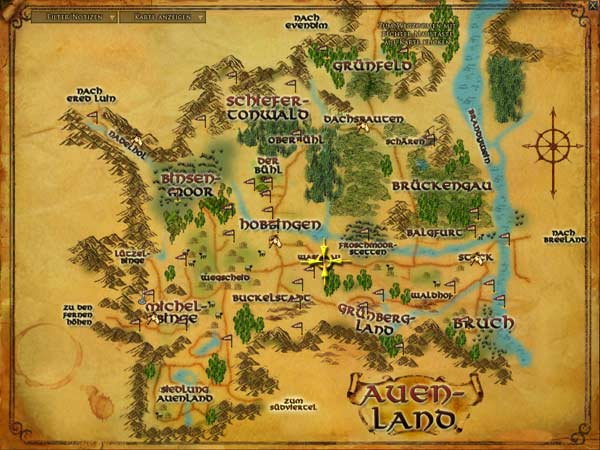 | Das Städtchen Wasserau liegt im Westviertel des Auenlands. Wie der Name schon vermuten lässt, liegt es am Rand des Wasserauer Sees, eine Verbreitung des Flusses Wässer. Der Fluss läuft von den Nordmooren über Hobbingen nach Wasserau, um schließlich im Osten in den Brandywein zu münden. Der bekannteste Treffpunkt des stillen Städtchens ist wahrscheinlich der Grüne Drache, ein freundlicher Platz um sich ein Getränk zu genehmigen und dem munteren Anwohnern beim örtlichen Klatsch zu lauschen. Wasseraus Postamt zählt zu den meistbesuchten der Umgebung, denn Hobbits lieben es, sich zu jedem Anlass ein Geschenk zu schicken; sei es ein Geburtstag, Feiertag oder irgendein anderer Tag, der sich zum Geschenke verschicken eignet - und es eignet sich fast jeder! |