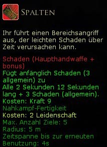 | Stufe | Fertigkeit | Gruppe | Kosten | Bemerkungen |