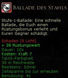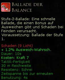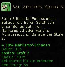| Stufe | Fertigkeit | Gruppe | Kosten | Bemerkungen |