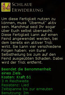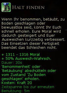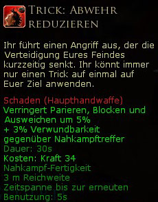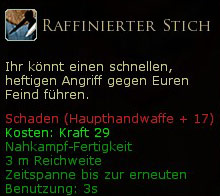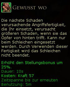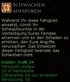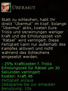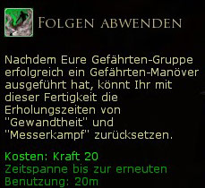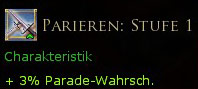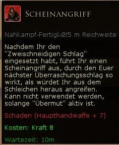| Stufe | Fertigkeit | Gruppe | Kosten | Bemerkungen |