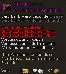 Bei diesem Händler könnt Ihr folgende Reittiere erwerben: