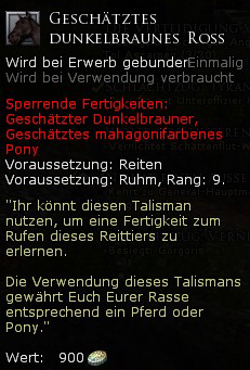 Bei diesem Händler bekommt Ihr folgende Reittiere: