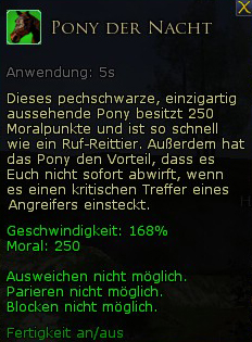 finden im Store unter: Reise & Unterk. > Reittiere Angebot zeitlich begrenzt: 1. bis 14. Juli 2011 |