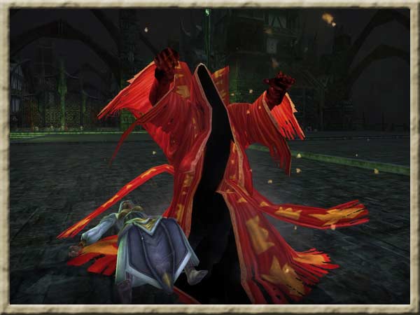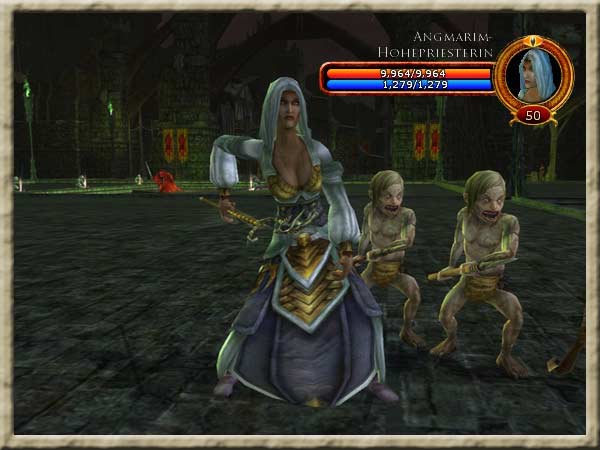 Ein Jäger holt immer eine Angmarim-Hohepriesterin. Diese kommt mit zwei Begleitern vom blassen Volk. Sobald ein Paket an Gegnern besiegt ist, holt man das nächste bis nur noch der Cargûl übrig ist. |