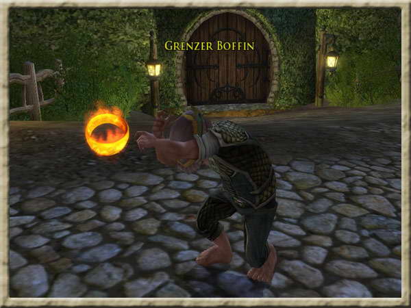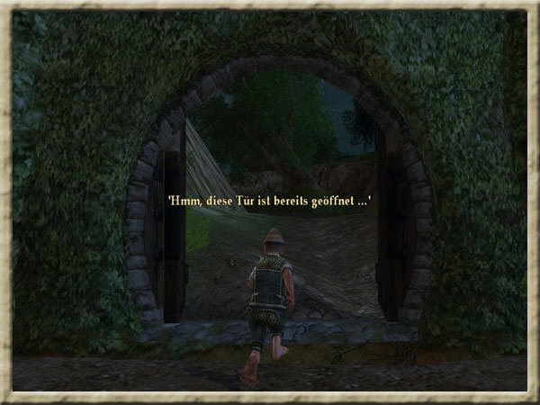 9. Folgt Grenzer Boffin Folgt Grenzer Boffin, der versucht, die Tür zum Hof des Alten Odo zu öffnen. Grenzer Boffin ist es gelungen, die Netze zu durchtrennen, die Euch den Weg versperrten, und Ihr seid jetzt fast auf dem Hof des Alten Odo in Sicherheit. |