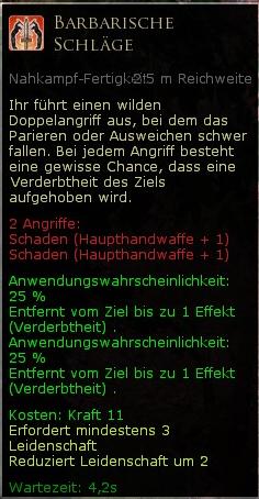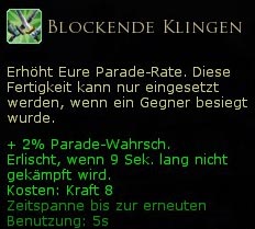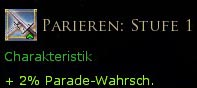 | Stufe | Fertigkeit | Gruppe | Kosten | Bemerkungen |