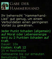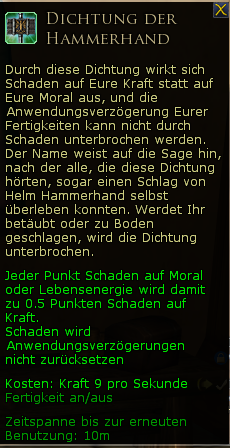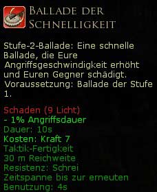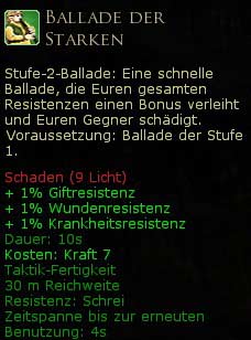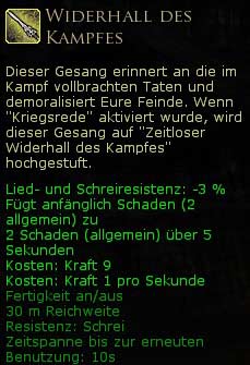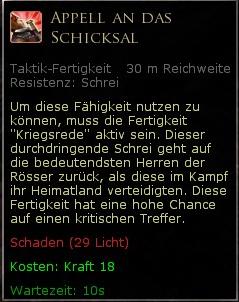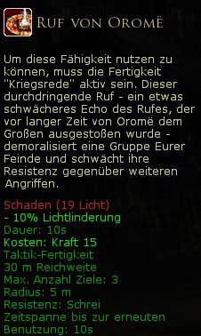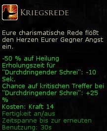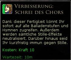 | Stufe | Fertigkeit | Gruppe | Kosten | Bemerkungen |