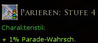 | Stufe | Fertigkeit | Gruppe | Kosten | Bemerkungen |
