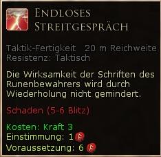 | Stufe | Fertigkeit | Gruppe | Kosten | Bemerkungen |