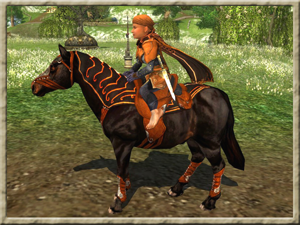 Das Reittier eines Jägers muss flink und schnell sein, um einer Beute hinterherzujagen, und doch robust genug, um das Gewicht der Werkzeuge des Jägers zu tragen: Fallen, Köcher, Rationen für eine lange, kalte Nacht. Dieses Ross stammt von den Wildpferden der Ebenen von Rhovanion ab und wird seinen Herrn tapfer gegen die Mächte der Dunkelheit tragen. Dieses Ross kommt mit einer Pelz-Satteldecke und einem Brustpanzer, einem grünen Sattel und Nackenschutz sowie pelzgefütterten Gamaschen und besitzt alles, was ein wahrer Jäger in seinem Kampf gegen das Böse benötigt! Dieses Ross stammt von den Wildpferden der Ebenen von Rhovanion ab, verfügt über 250 Lebensenergie und ermöglicht es Ihnen, 68 % schneller als zu Fuß zu reisen. Im Vergleich zu vielen anderen seiner Art ein schnelleres und kräftigeres Reittier! Exklusiv im HdRO-Shop! Reitfertigkeit zur Benutzung dieses Reittiers erforderlich. Angebot zeitlich begrenzt: 7. bis 20. Oktober 2011 |